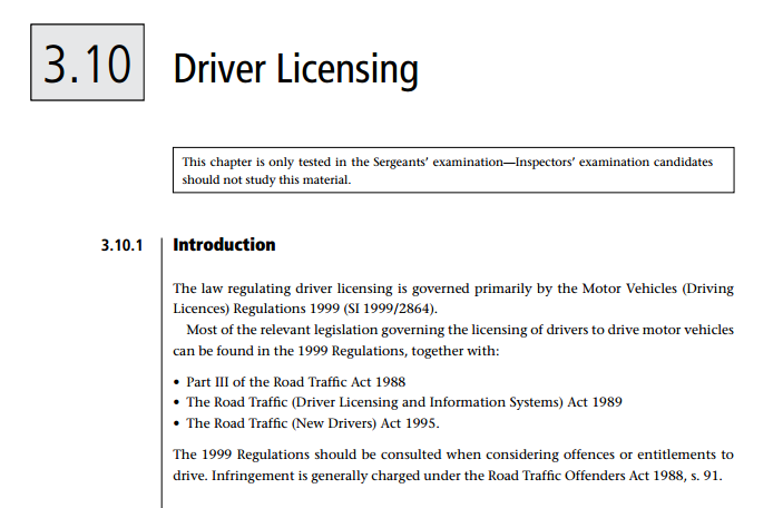 <p role="emphasis">This chapter is only tested in the Sergeants’ examination—Inspectors’